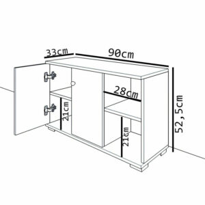 - Διαθέτει ντουλάπι για κλειστή αποθήκευση των αντικειμένων καθώς και ράφί που προσφέρεται για ανοιχτή οργάνωση των αξεσουάρ σας ή για δημιουργία διακοσμητικών συνθέσεων.