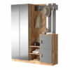 - Η σύνθεση περιλαμβάνει: Ντουλάπι που εσωτερικά φέρει έξι ράφια και στο εξωτερικό της φέρει μεγάλο καθρέπτη. Τρεια ράφια για ανοιχτή αποθήκευση, δύο ντουλαπία πιο μικρά για εσωτερική αποθήκευση. Επίσης, διαφέρει τέσσερα κρεμάστρες για την τοποθέτηση παλτών, μπουφάν κλπ.