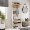 Αναβαθμίστε τον χώρο σας με αυτήν την μοντέρνα και πρακτική λύση αποθήκευσης! Αυτό το έπιπλο συνδυάζει έναν ευρύχωρο, κάθετο πύργο με ράφια, μία κρεμάστρα ρούχων και ένα συρτάρι, προσφέροντας άφθονο χώρο για όλα τα προσωπικά σας αντικείμενα. Είναι ιδανικό για υπνοδωμάτια, εισόδους σπιτιού ή ακόμη και για γραφεία, όπου μπορεί να λειτουργήσει ως ένας κομψός και λειτουργικός χώρος αποθήκευσης. Ο μοντέρνος συνδυασμός φυσικού χρώματος ξύλου και μαύρων λεπτομερειών προσδίδει στυλ και κομψότητα, ενσωματώνοντάς την εύκολα σε κάθε minimal ή σκανδιναβικού σχεδιασμού διακόσμηση.