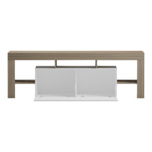 - Προσφέρει ποικιλία αποθηκευτικών λύσεων: Διαθέτει δύο ευρύχωρους κλειστους χώρους με διακριτικά χερούλια, ιδανικά για την αποθήκευση αντικειμένων που δεν θέλουμε να είναι ορατά (π.χ. καλώδια, τηλεχειριστήρια, παιχνίδια). Και ράφια που ειναι είναι ιδανικα για την τοποθέτηση ηλεκτρονικών συσκευών (π.χ. αποκωδικοποιητές, κονσόλες, DVD/Blu-ray players) ή για διακοσμητικά αντικείμενα.