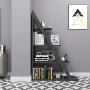 Μια μοντέρνα βιβλιοθήκη-ραφιέρα σε γωνιακό σχεδιασμό, με πέντε ράφια σε διαφορετικά επίπεδα, ιδανική για να προσθέσει μια πινελιά στυλ και λειτουργικότητας σε κάθε χώρο. Με το πρωτότυπό της σχέδιο και τα ευρύχωρα ράφια, προσφέρει μια μοναδική λύση αποθήκευσης και έκθεσης βιβλίων, διακοσμητικών αντικειμένων, φυτών και άλλων αντικειμένων
