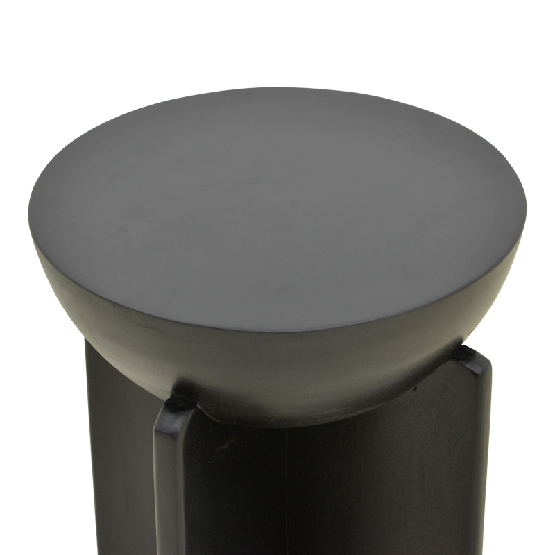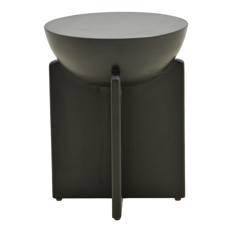 Προσθέστε μια δόση εκλεπτυσμένου δράματος στο χώρο σας με το βοηθητικό τραπεζάκι Jenby σε μαύρο φινίρισμα. Αυτό το κομμάτι αποτελεί μια σπουδή στη γεωμετρία, συνδυάζοντας την απόλυτη καμπύλη της ημισφαιρικής επιφάνειας με τη στιβαρή, σταυρωτή δομή της βάσης του.