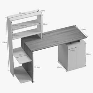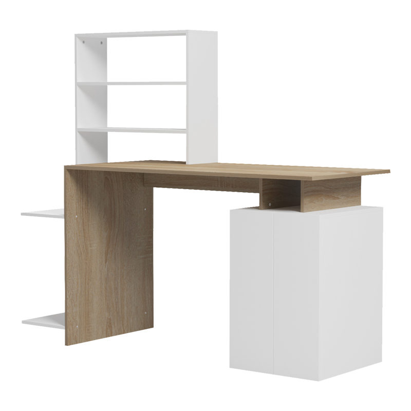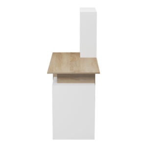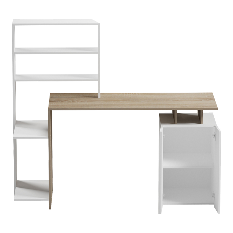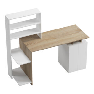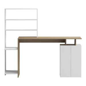 Το γραφείο εργασίας Meza συνδυάζει τη λειτουργικότητα και το σύγχρονο σχεδιασμό. Διαθέτει ένα ευρύχωρο γραφείο εργασίας, ιδανικό για υπολογιστή, μια ενσωματωμένη βιβλιοθήκη που προσφέρει άπλετο αποθηκευτικό χώρο για βιβλία, διακοσμητικά αντικείμενα ή φακέλους. Το μινιμαλιστικό του σχέδιο και τα ουδέτερα χρώματα το καθιστούν εύκολο να ταιριάξει σε οποιοδήποτε χώρο. Κατάλληλο και για επαγγελματική χρήση