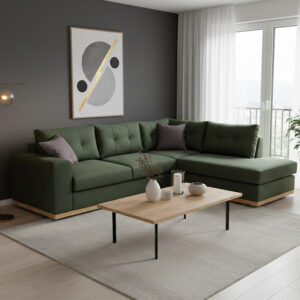 -Χρώμα καναπέ και μαξιλαριών πλάτης: Κυπαρισσί – Φέρει δύο διακοσμητικά μαξιλαράκια σε ανθρακί χρώμα.