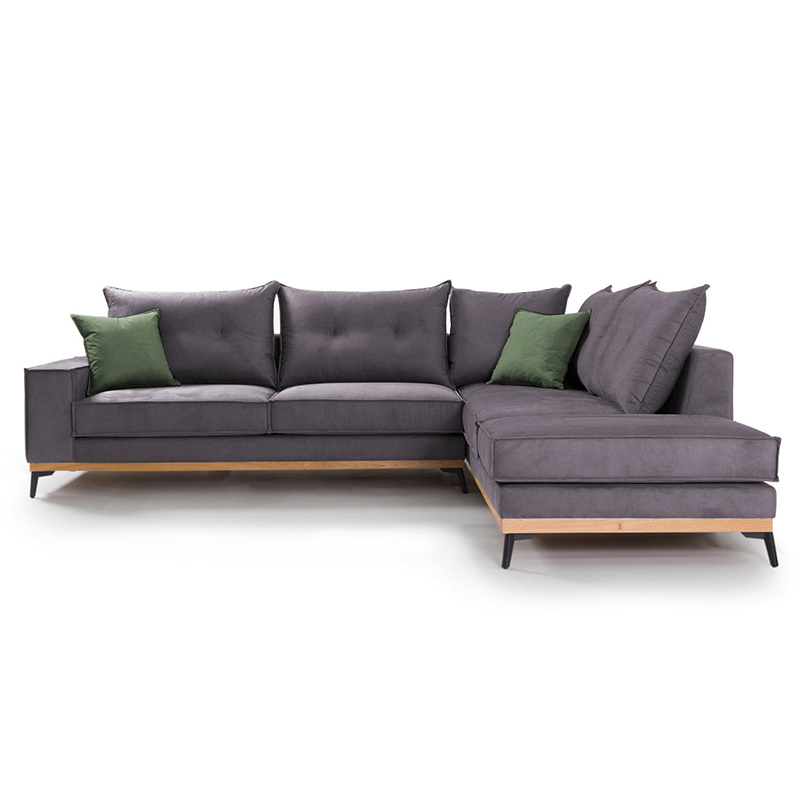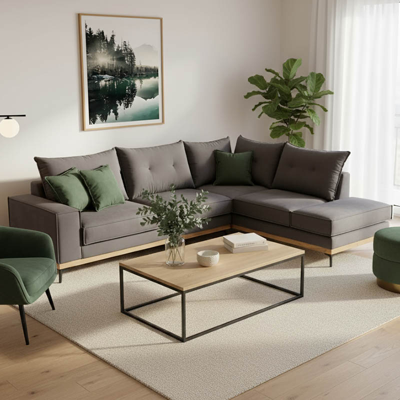 Γωνιακός καναπές αριστερή γωνία Luxury II pakoworld ύφασμα ανθρακί-κυπαρισσί 290x235x95εκ