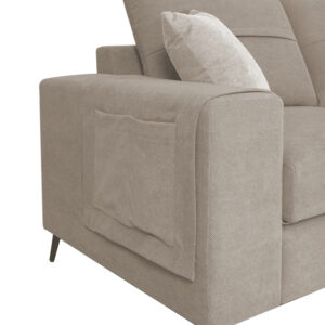 - Χρώμα καναπέ και μαξιλαριών πλάτης: Γκρι-μπεζ – Φέρει δύο διακοσμητικά μαξιλαράκια σε ανοιχτό γκρι χρώμα.