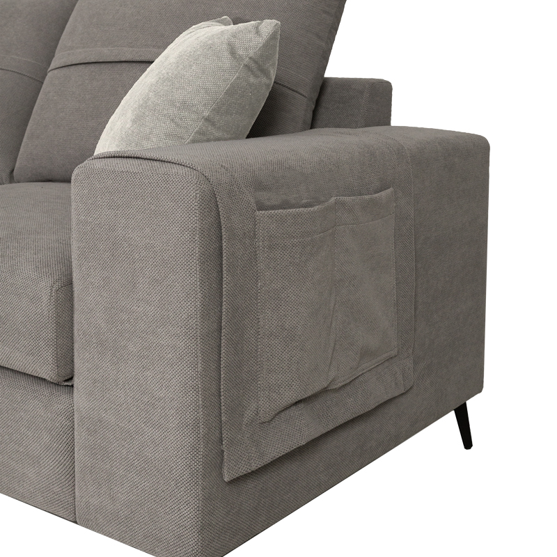 - Χρώμα καναπέ και μαξιλαριών πλάτης: Γκρι- Φέρει δύο διακοσμητικά μαξιλαράκια σε ανοιχτό γκρι χρώμα.
