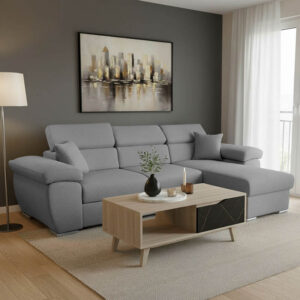 Γωνιακός καναπές-κρεβάτι αναστρέψιμος Comy pakoworld γκρι 286x160x75-90εκ