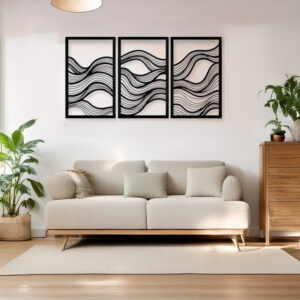 Φέρτε την αύρα της θάλασσας και τη δυναμική κίνηση των κυμάτων στον τοίχο σας με το σετ Ocena. Αυτό το τρίπτυχο παίζει με τις καμπύλες και τις παράλληλες γραμμές, δημιουργώντας μια αίσθηση συνεχούς ροής που ηρεμεί το βλέμμα και αναβαθμίζει την αισθητική του χώρου.