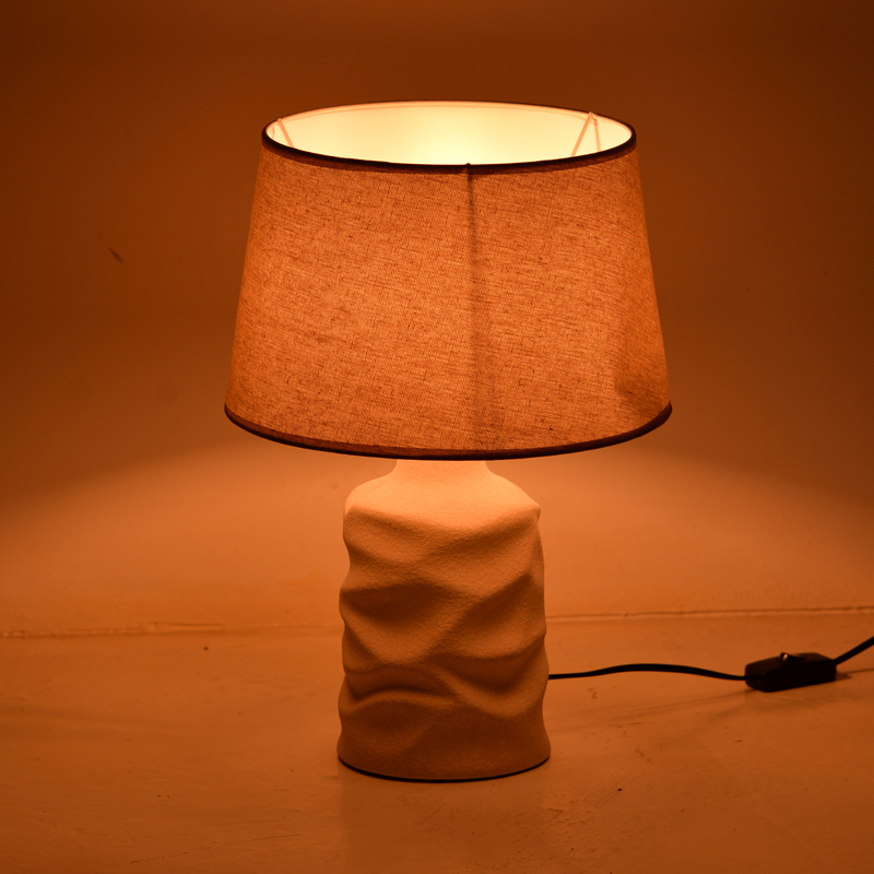 Η εντυπωσιακή βάση του, διαθέτει μια μοναδική υφή με απαλές κυματιστές γραμμές που προσδίδουν βάθος και ζεστασιά. Το λιτό αμπαζούρ συμπληρώνει ιδανικά τη βάση, διαχέοντας ένα απαλό και ομοιόμορφο φως που δημιουργεί μια χαλαρωτική και φιλόξενη ατμόσφαιρα.