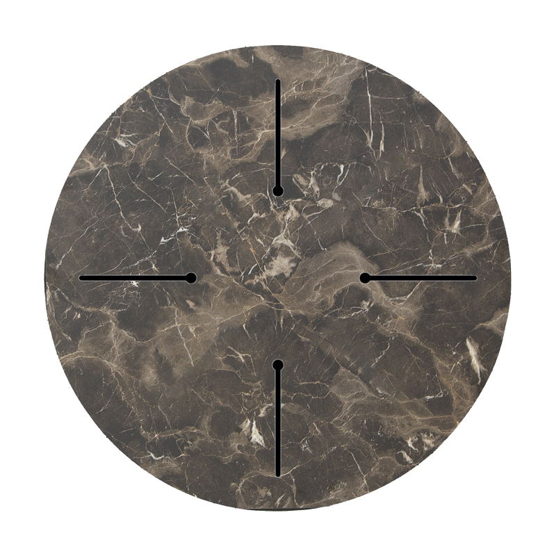 • Η επιφάνεια φέρει οδηγό στήριξης για την βάση του τραπεζιού. Δε τρυπιέται αλλά το κεφάλι της βίδας τοποθετείται μέσα στον εγχάρακτο οδηγό και σφίγγει στη μεταλλική βάση με παξιμάδι.