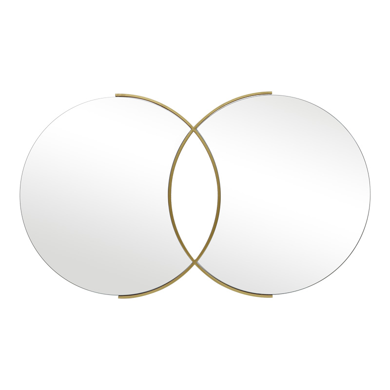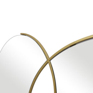 Ο εντυπωσιακός αυτός καθρέφτης τοίχου αποτελεί ένα μοναδικό διακοσμητικό στοιχείο που θα αναβαθμίσει κάθε χώρο. Με τον πρωτότυπο σχεδιασμό του, που συνδυάζει δύο κυκλικούς καθρέφτες με ένα κομψό χρυσό πλαίσιο, προσφέρει μια σύγχρονη και πολυτελή αίσθηση.