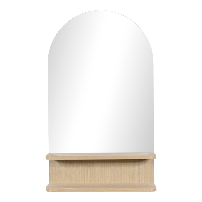 O κομψός καθρέφτης με ξύλινο πλαίσιο Mensola είναι η ιδανική προσθήκη για κάθε δωμάτιο. Με το μοντέρνο του design και τα δύο ενσωματωμένα ράφια, προσφέρει όχι μόνο λειτουργικότητα αλλά και ζεστασιά στον χώρο σου.