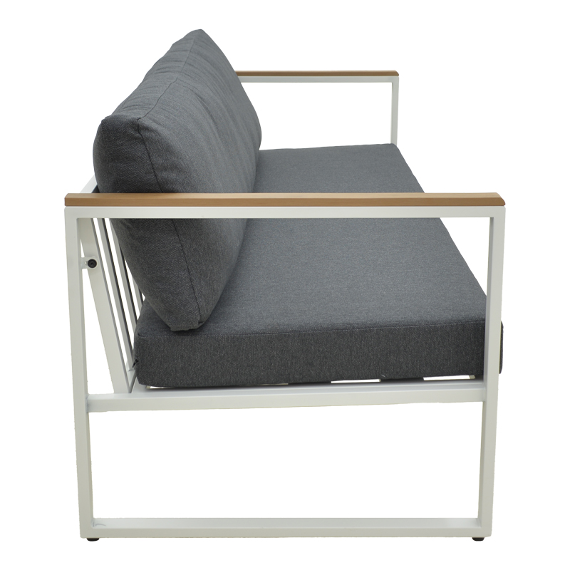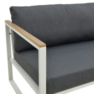 Αναβαθμίστε τον εξωτερικό ή εσωτερικό σας χώρο με τον 2θέσιο καναπέ Aurelio. Με στιβαρό ατσάλινο σκελετό και κομψές, μοντέρνες γραμμές, συνδυάζει στυλ, άνεση και μακροχρόνια αντοχή. Τα μπράτσα με επένδυση plywood προσθέτουν μια φυσική πινελιά, ενώ τα πλούσια μαξιλάρια εξασφαλίζουν μια premium εμπειρία καθίσματος.