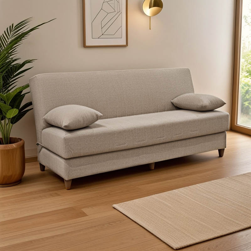 Καναπές-κρεβάτι με αποθηκευτικό χώρο τριθέσιος Romina pakoworld κρεμ ύφασμα 190x85x90εκ