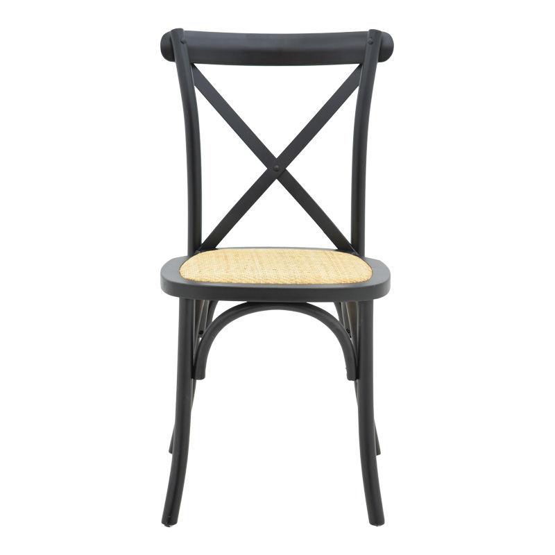 Καρέκλα Dylon pakoworld στοιβαζόμενη μαύρο ξύλο οξιάς-έδρα φυσικό rattan 48x52x89εκ
