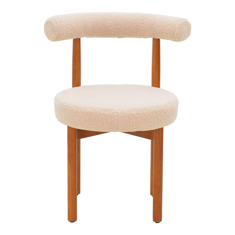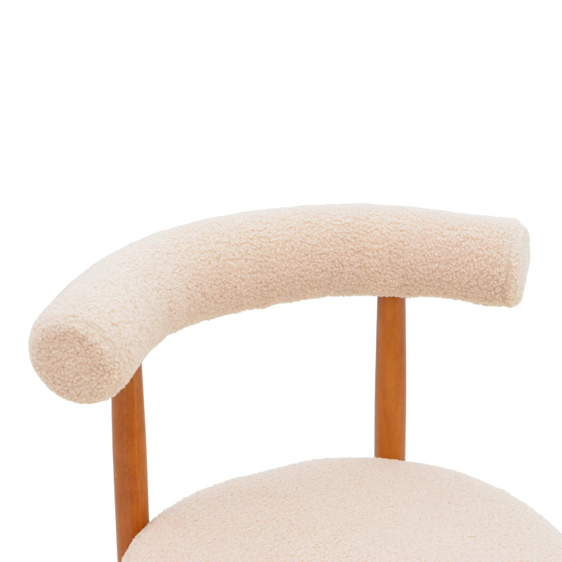 - Επένδυση πλάτης και έδρας με μπουκλέ ύφασμα, που προσδίδει μία αίσθηση ζεστασιάς και κομψότητας.