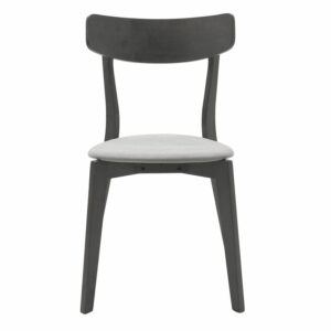 * Πλάτη και έδρα κατασκευασμένες από rubberwood πάχους 18χιλ. χρώματος rustic grey (ανθρακί). Η έδρα επενδύεται με ανθεκτικό ύφασμα υψηλών αντοχών χρώματος γκρι.