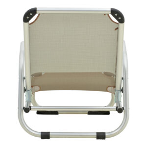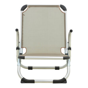 - Επένδυση υφάσματος textinene σε χρώμα μπεζ. Το textilene είναι ύφασμα μεγάλης αντοχής στην ηλιακή ακτινοβολία UV και την υγρασία, ενώ παράλληλα αφήνει το δέρμα να “αναπνέει” δημιουργώντας έτσι άνεση στην έδραση.