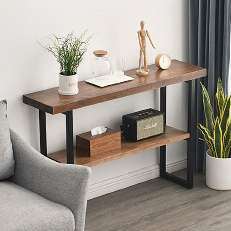 Κονσόλα Nore pakoworld φυσικό ξύλο πεύκου 35mm καρυδί-μαύρο 79x29x85εκ