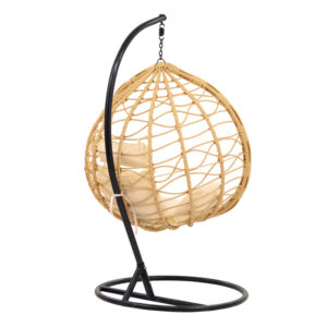 Κούνια Hudson pakoworld κρεμαστή μέταλλο μαύρο-pp φυσικό-μαξιλάρι μπεζ 109x119x195εκ