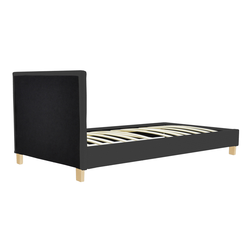 Το κρεβάτι Nevil είναι η επιτομή της σύγχρονης λιτότητας, καθώς ο ενιαίος, επενδυμένος όγκος του σκελετού και του ψηλού κεφαλαριού ντύνεται εξ ολοκλήρου στο δυναμικό ανθρακί χρώμα. Η οπτική βαρύτητα του ανθρακί απογειώνεται από τη λεπτομέρεια της βάσης: τέσσερα λιτά πόδια σε φυσικό χρώμα, προσφέροντας μια ζεστασιά και μια γήινη αντίθεση που “σπάει” τη μονοχρωμία και αναδεικνύει το design. Αυτός ο συνδυασμός σκούρου χρώματος και ξύλινης λεπτομέρειας μετατρέπει το κρεβάτι σε κεντρικό διακοσμητικό στοιχείο, δημιουργώντας μια ζεστή και ταυτόχρονα σοφιστικέ ατμόσφαιρα στον χώρο.