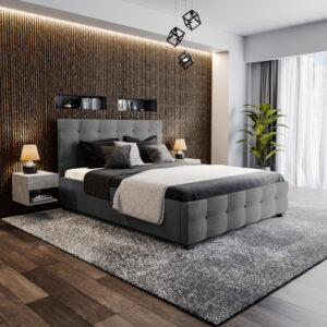 Κρεβάτι Roi pakoworld διπλό 160×200 ύφασμα ανθρακί + αποθηκευτικό χώρο