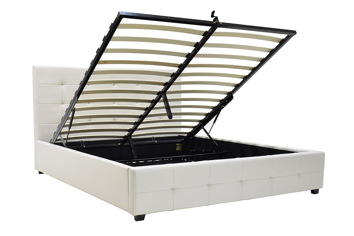 Κρεβάτι Roi pakoworld διπλό 160×200 PU λευκό ματ + αποθηκευτικό χώρο