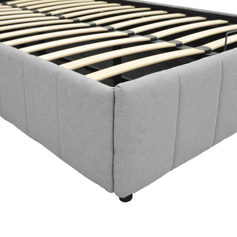Το κρεβάτι διαθέτει έναν εύχρηστο μηχανισμό ανύψωσης του στρώματος, ο οποίος αποκαλύπτει έναν ευρύχωρο αποθηκευτικό χώρο από κάτω. Αυτό καθιστά εξαιρετικά εύκολη την τακτοποίηση κλινοσκεπασμάτων, μαξιλαριών, ρούχων εκτός εποχής ή άλλων αντικειμένων, συμβάλλοντας αποτελεσματικά στην οργάνωση και την τάξη του χώρου.