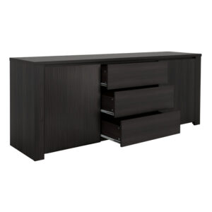 Διαθέτει δύο πλαϊνά ντουλάπια με εσωτερικά ράφια, ιδανικά για την αποθήκευση αντικειμένων που θέλετε να διατηρήσετε διακριτικά. Στο κέντρο, τρία ευρύχωρα συρτάρια παρέχουν επιπλέον αποθηκευτικό χώρο για μικρότερα αντικείμενα, βοηθώντας στη διατήρηση ενός τακτοποιημένου περιβάλλοντος. Η επιφάνειά του προσφέρει άφθονο χώρο για την τοποθέτηση διακοσμητικών στοιχείων, φωτιστικών ή άλλων αντικειμένων. Η κατασκευή από υψηλής ποιότητας ξύλο σε φυσική απόχρωση προσδίδει μια ζεστή και φιλόξενη αίσθηση στον χώρο σας, ενώ η στιβαρή της κατασκευή εγγυάται μακροχρόνια ανθεκτικότητα. Αυτό το ευέλικτο έπιπλο είναι ιδανικό για το σαλόνι, την τραπεζαρία ή οποιονδήποτε άλλο χώρο χρειάζεται επιπλέον αποθηκευτικό χώρο με στυλ.