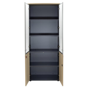 Ντουλάπα γραφείου με γυάλινες πόρτες Lotus χρώμα φυσικό – ανθρακί 80x40x200εκ