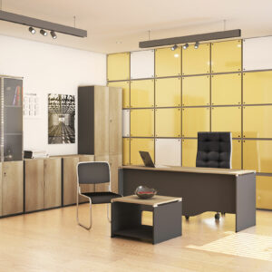 - Συνδυάζεται αρμονικά με τα υπόλοιπα είδη της σειράς: Βιβλιοθήκες, ντουλάπια, γραφεία και τραπεζάκι επισκέπτη.