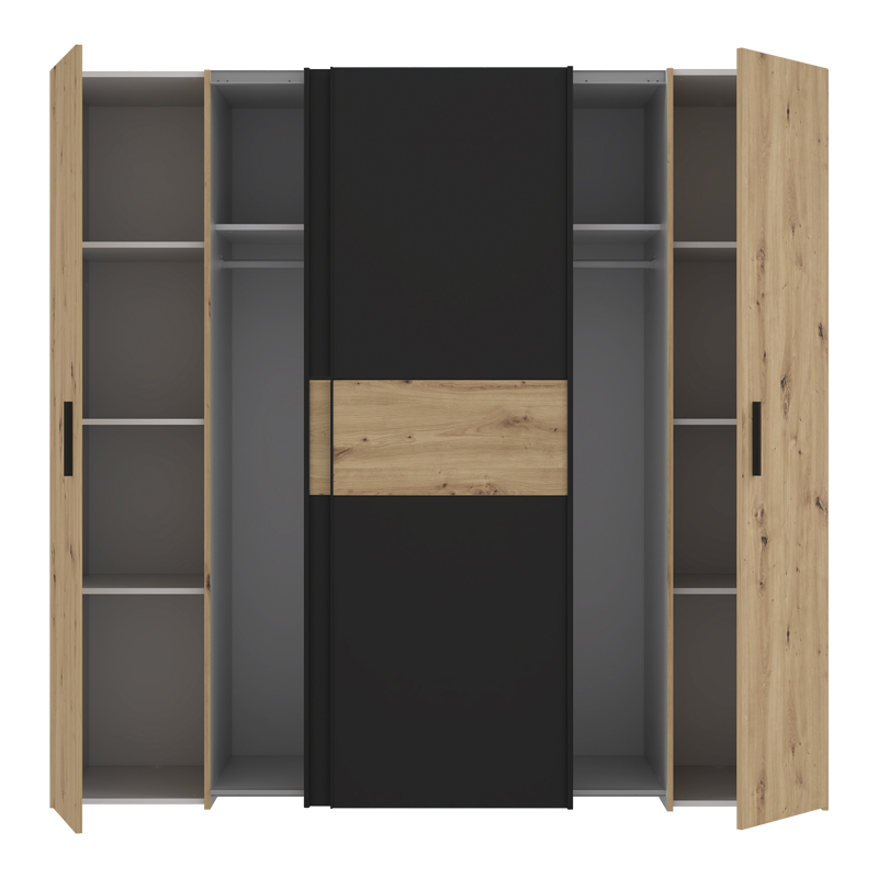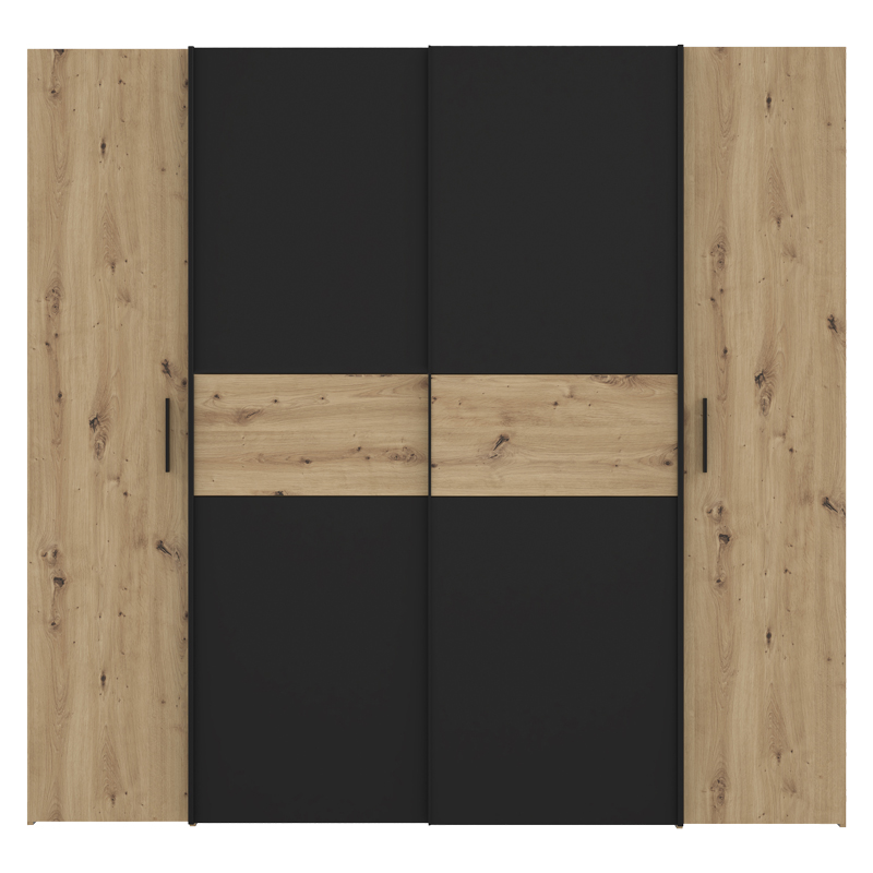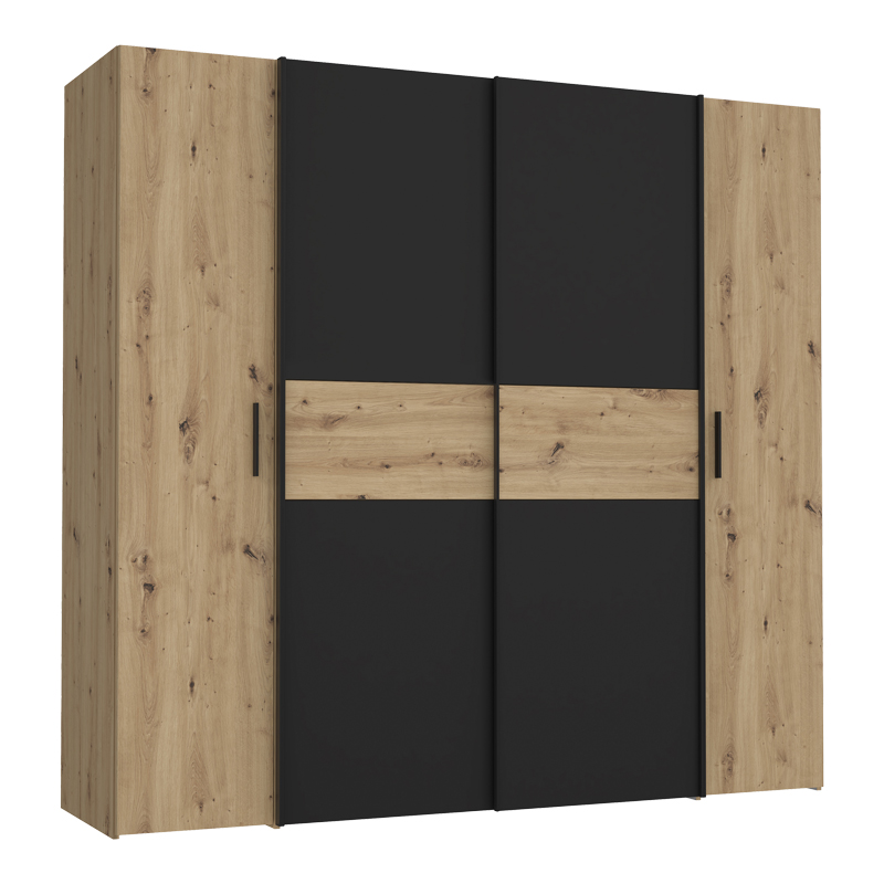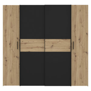 Ντουλάπα ρούχων Bekerk pakoworld τετράφυλλη μαύρο-oak μελαμίνης 200×61.5×190.5εκ