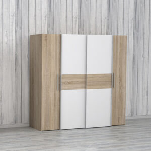 * Σκελετός κατασκευασμένος από μοριοσανίδα με επένδυση μελαμίνης υψηλής ποιότητας, με αντοχή στην καταπόνηση, την φθορά και τον χρόνο. Η μοριοσανίδα είναι γνωστή για την αντοχή της σε φορτία και πίεση. Αυτή η ιδιότητα την καθιστά κατάλληλη για την κατασκευή επίπλων όπως οι ντουλάπες.