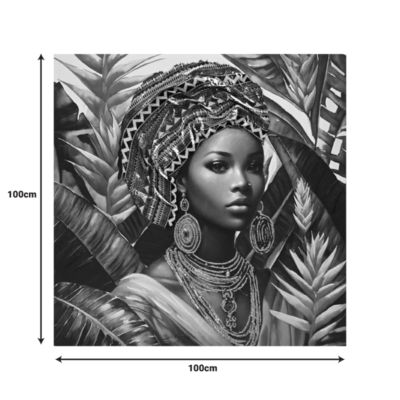 Ο πίνακας σε καμβά Gangalo είναι ένα όμορφο και εντυπωσιακό έργο τέχνης που γιορτάζει την ομορφιά, την πολιτισμική ταυτότητα και τη σύνδεση με τη φύση. Τα τροπικά φυτά δημιουργούν ένα πλούσιο και ζωντανό φόντο, ενισχύοντας την αίσθηση της εξωτικής ομορφιάς.