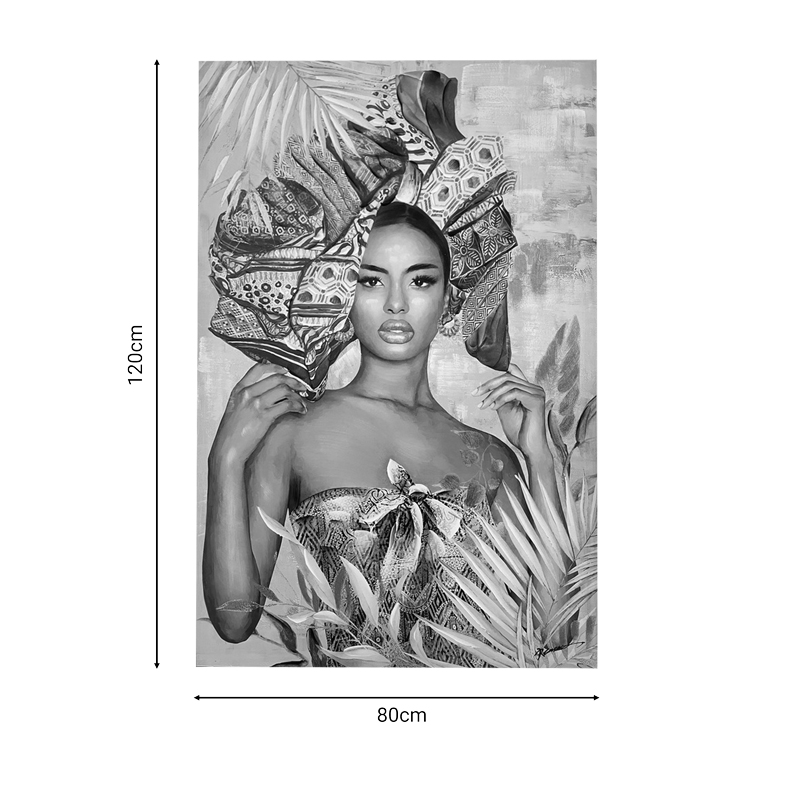Ο πίνακας Bezira θα διακοσμήσει τον χώρο σας, δίνοντας του μία πνοή ανανέωσης. Η γυναίκα παρουσιάζεται με εκλεπτυσμένα χαρακτηριστικά, με τα γκρι χρώματα να αναδεικνύουν την υποκείμενη ένταση και την εσωτερική δύναμη της φιγούρας.