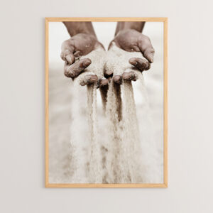 Ανακαλύψτε τη φυσική ομορφιά και τη γαλήνη με τον πίνακα Ellery. Η φωτογραφία αποτυπώνει δύο χέρια που κρατούν άμμο, δημιουργώντας μια αίσθηση ηρεμίας και σύνδεσης με τη φύση. Είναι ιδανικός για να προσθέσει μια νότα φρεσκάδας και κομψότητας στον χώρο σας.