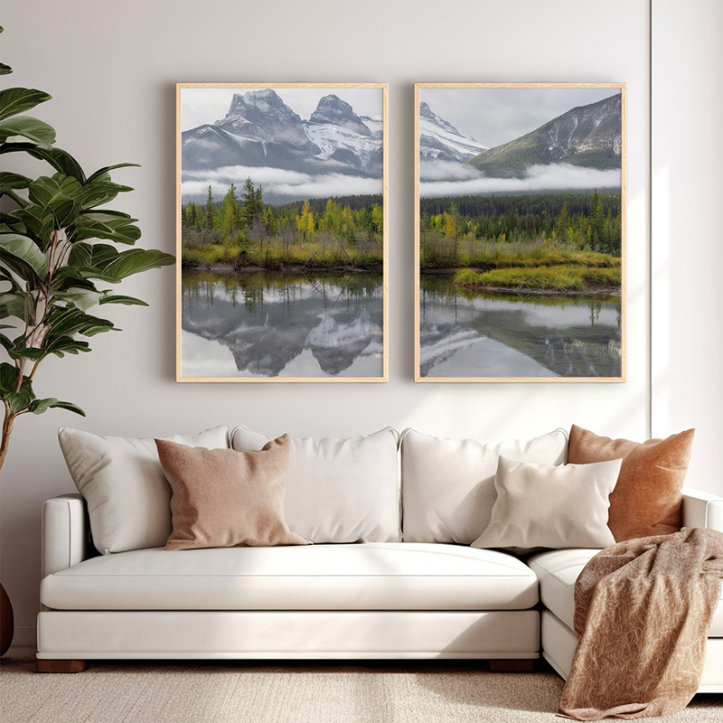 Αφήστε το βλέμμα σας να χαθεί στην αιώνια ηρεμία του βουνού και την τέλεια ισορροπία της φύσης. Το δίπτυχο Leron δεν είναι απλώς διακόσμηση, είναι μία αισθητική δήλωση που αναπαριστά τη μεγαλοπρέπεια ενός ορεινού τοπίου και την αψεγάδιαστη αντανάκλασή του σε μία ήρεμη λίμνη. Κάθε φορά που εστιάζετε στις χιονισμένες κορυφές και το πλούσιο πράσινο, νιώθετε μια αίσθηση εσωτερικής γαλήνης, ισορροπίας και φυσικής δύναμης. Το έργο συμβολίζει την ηρεμία, την τελειότητα της φύσης και τη διαχρονική ομορφιά. Είναι η οπτική υπενθύμιση ότι η πολυτέλεια βρίσκεται στο μεγαλείο του φυσικού κόσμου.