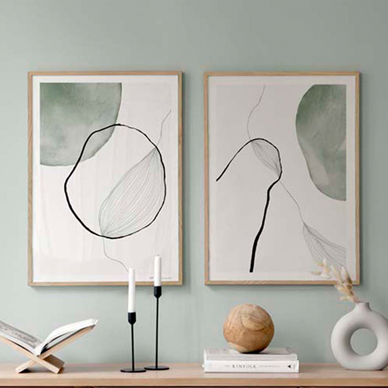 Ο πίνακας Tiano είναι ένα κομψό, αφηρημένο και μινιμαλιστικό δίπτυχο (ζεύγος πινάκων) που συγκρούει την οργανική γεωμετρία με τη σύγχρονη σκανδιναβική αισθητική. Απεικονίζονται δύο πανομοιότυποι πίνακες που διαθέτουν αφηρημένα, οργανικά σχήματα σε παστέλ πράσινο χρώμα, τα οποία διαγράφονται από λεπτές μαύρες γραμμές. Διατηρούνται τα κλασικά στοιχεία του αφηρημένου minimal design, ενώ το φόντο είναι σε ήρεμους, ουδέτερους τόνους του λευκού, προσδίδοντας γαλήνη και φως. Είναι ιδανικό για να λειτουργήσει ως το κεντρικό σημείο εστίασης σε κάθε δωμάτιο, προσδίδοντας κομψότητα, ηρεμία και έναν minimal/Chic τόνο.