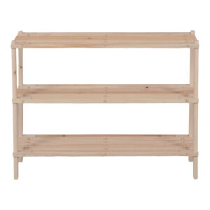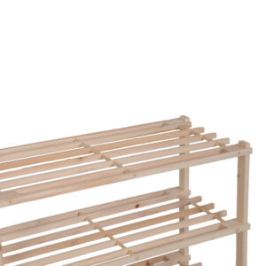 Κατασκευασμένη από ανθεκτικό ξύλο, διαθέτει τρία επίπεδα με αραιά πηχάκια που επιτρέπουν τον σωστό αερισμό των παπουτσιών, αποτρέποντας τη συσσώρευση υγρασίας και δυσάρεστων οσμών. Ο λιτός, μινιμαλιστικός σχεδιασμός της την καθιστά κατάλληλη για κάθε χώρο, είτε πρόκειται για την είσοδο, έναν διάδρομο ή μέσα σε μια ντουλάπα.
