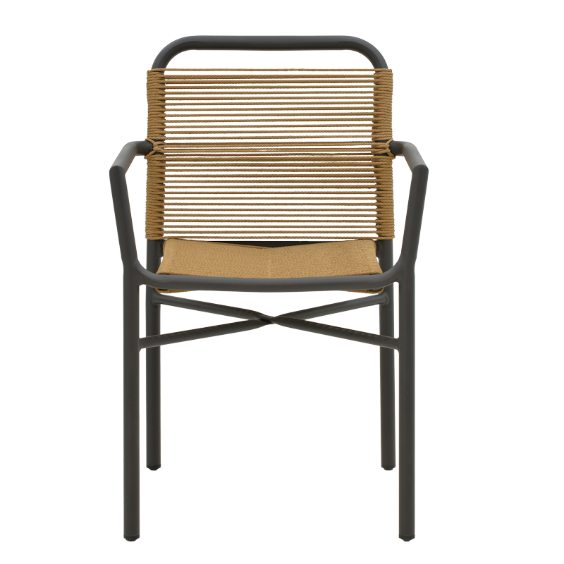 * Κυρίως σώμα καρέκλας από ρατάν. Η κύρια ιδιότητα του ράταν είναι η ευελιξία του, καθώς μπορεί να πλεκτεί και να διαμορφωθεί εύκολα. Επίσης, είναι ανθεκτικό και αντέχει στις καιρικές συνθήκες, καθιστώντας το ιδανικό για επιπλέον εξωτερικούς χώρους.