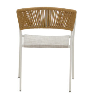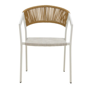 - Έδρα κατασκευασμένη από textilene σε γκρι απόχρωση . Το textilene είναι ένα εξαιρετικά ανθεκτικό υλικό που χρησιμοποιείται ευρέως σε επίπλωση εξωτερικών χώρων και εξαρτήματα. Αποτελείται από πολυεστερικές ινώδεις που επικαλύπτονται με PVC (πολυβινυλοχλωρίδιο), δημιουργώντας ένα υλικό που συνδυάζει ανθεκτικότητα, αντοχή στις καιρικές συνθήκες και εύκαμπτη υφή. Το υλικό αυτό επιτρέπει τη διέλευση του αέρα, βοηθώντας στη διατήρηση μιας δροσερής αίσθησης κατά τη χρήση.