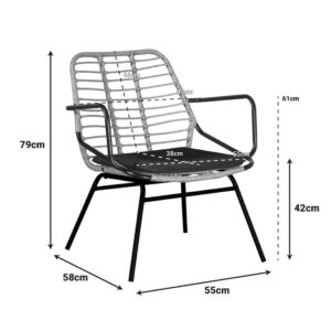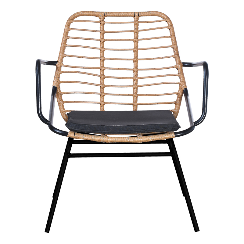 Πολυθρόνα κήπου Naoki pakoworld με μαξιλάρι pe φυσικό-μέταλλο μαύρο πόδι 58x63x81εκ
