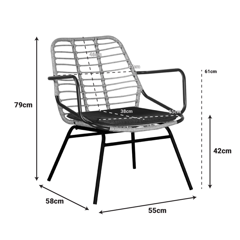 Υλικό: METAL- PE RATTAN-FABRIC CUSHION