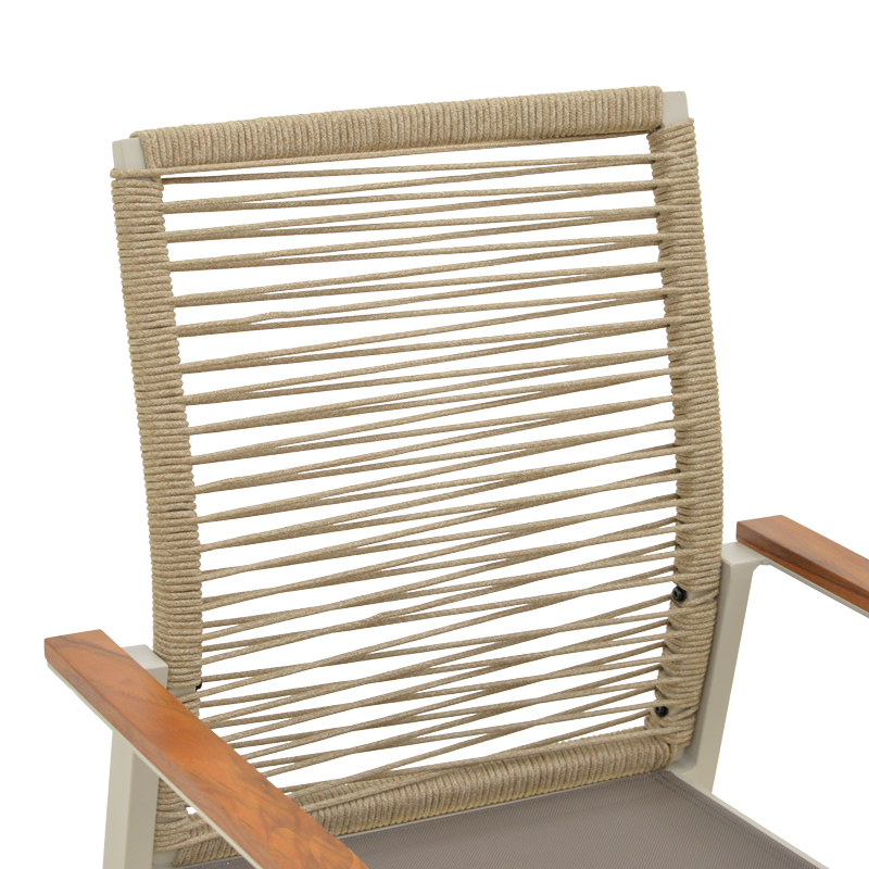 - Μοναδική Αίσθηση με Σχοινί & Teak: Η πλέξη από ανθεκτικό σχοινί (Ø5mm) προσφέρει μια ξεχωριστή, ανάλαφρη υφή. Τα μπράτσα από teak ξύλο χαρίζουν μια πολυτελή, φυσική πινελιά και την κάνουν να ξεχωρίζει