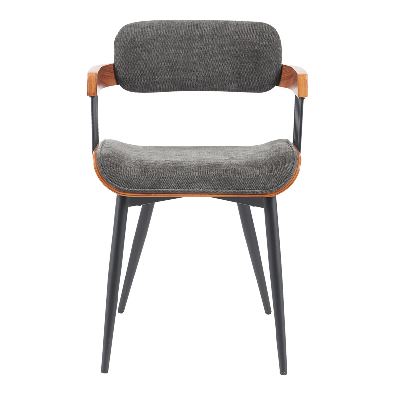 Η πολυθρόνα τραπεζαρίας Cameo συνδυάζει αρμονικά τη σύγχρονη αισθητική με την άνεση. Διαθέτει ένα καμπυλωτό κάθισμα και πλάτη, επενδυμένα με ένα απαλό ύφασμα που προσφέρει εξαιρετική άνεση για παρατεταμένα γεύματα. Οι λεπτομέρειες από φυσικό ξύλο στα μπράτσα προσθέτουν μια ζεστή, οργανική αίσθηση και προσφέρουν μια ενδιαφέρουσα οπτική αντίθεση και υποστήριξη. Τα μεταλλικά πόδια ολοκληρώνουν την εκλεπτυσμένη εμφάνιση, προσδίδοντας σταθερότητα αλλά και μια αίσθηση ελαφρότητας.