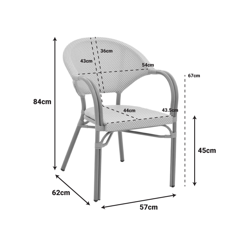 * Επένδυση καθίσματος με εξαιρετικής ποιότητας ύφασμα textilene. Το textilene είναι πλενόμενο και ανθεκτικό στις συνθήκες του εξωτερικού πέριβάλλοντος (ηλιακή ακτινοβολία, υγρασία).
