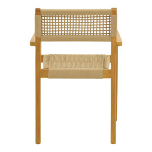 Αναβαθμίστε τον χώρο σας με αυτή την εκλεπτυσμένη πολυθρόνα Lengan, που συνδυάζει αριστοτεχνικά την ανθεκτικότητα του ξύλου teak με την ζεστασιά του χειροποίητου σχοινιού. Ιδανική τόσο για την τραπεζαρία όσο και για το καθιστικό ή έναν χώρο αναμονής, αυτή η πολυθρόνα προσφέρει έναν τέλειο συνδυασμό στυλ, άνεσης και διαχρονικής αισθητικής.