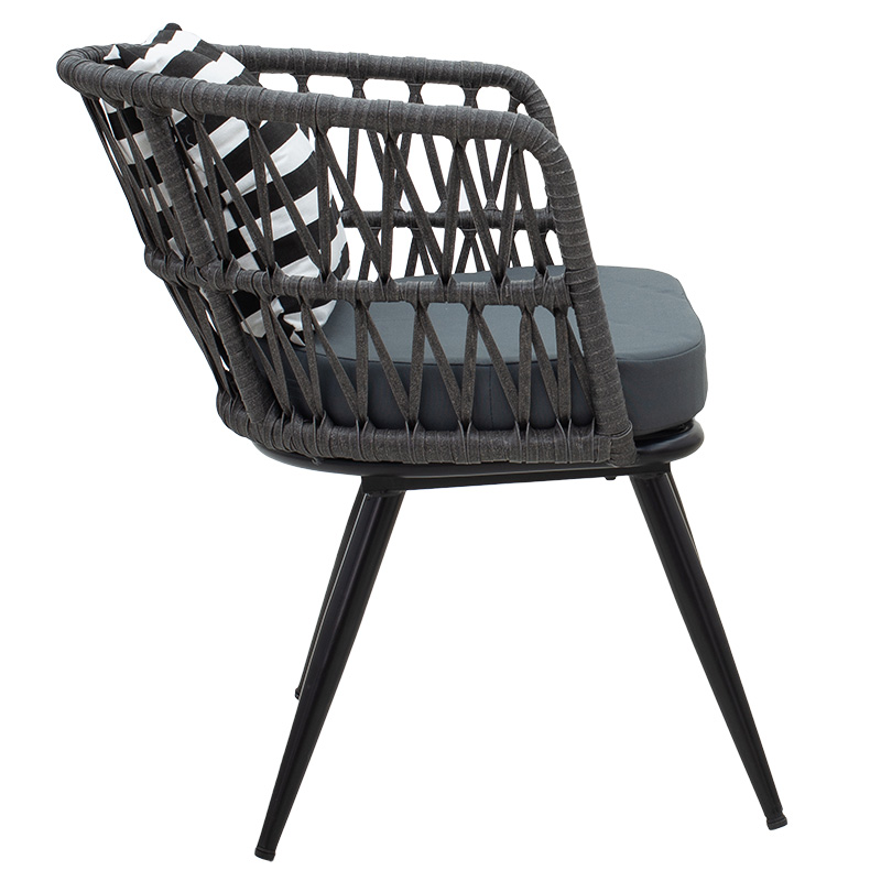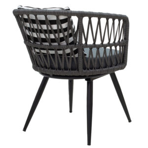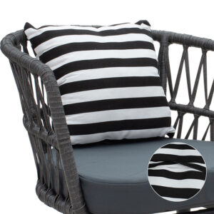 Πολυθρόνα Naoki pakoworld μέταλλο μαύρο-pe γκρι-μαξιλάρι ασπρόμαυρο