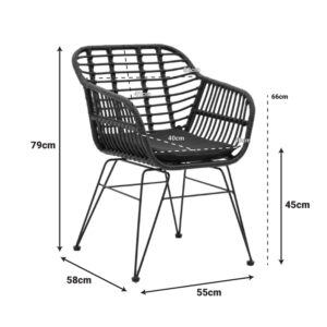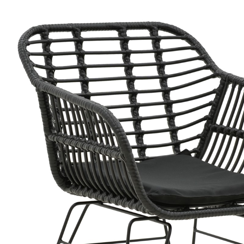 Πολυθρόνα κήπου Naoki pakoworld με μαξιλάρι pe μαύρο-μέταλλο μαύρο πόδι 55x58x79εκ